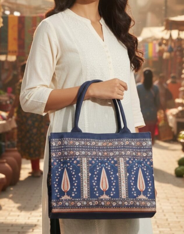 Blue Canvas Tote Bag for Women