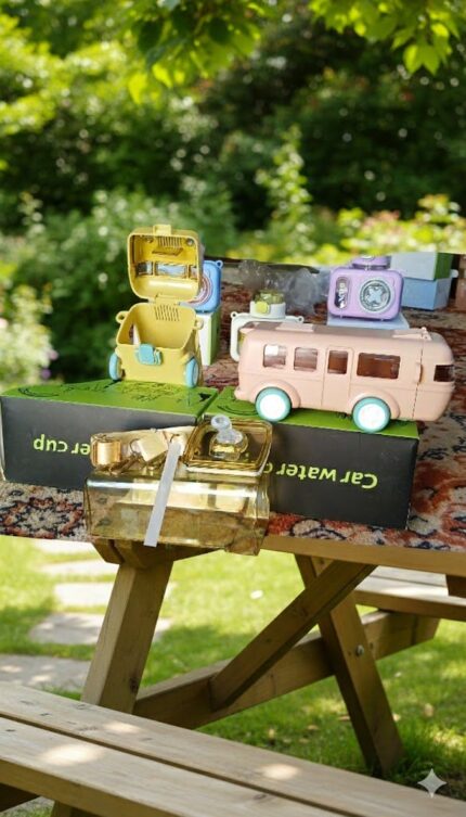 Kids Cartoon Bus Shape Water Bottle with Straw – BPA Free School Drinking Bottle