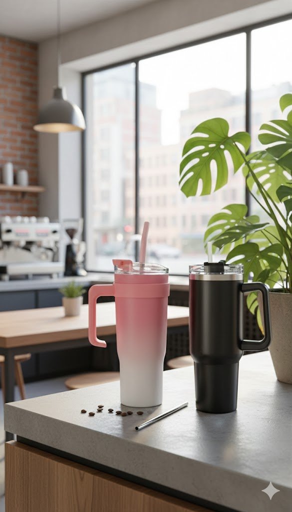 Premium Insulated Travel Tumbler with Handle & Straw – Hot & Cold Coffee Mug